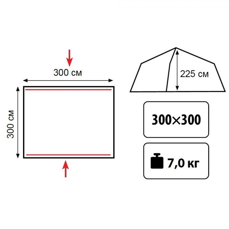 Размеры палатки, см 300 х 300