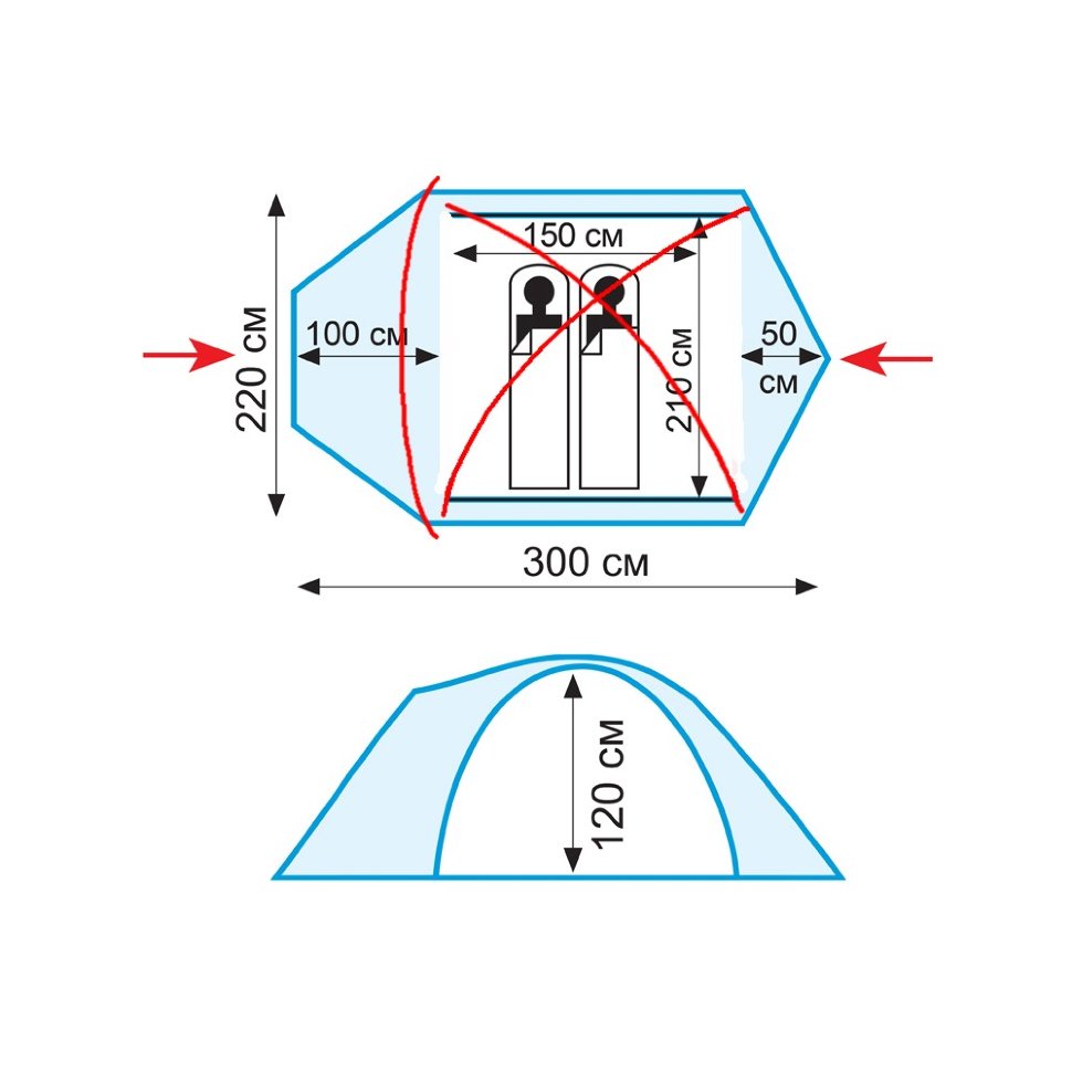 Внутренняя палатка: 100% дышащий полиэстер RipStop